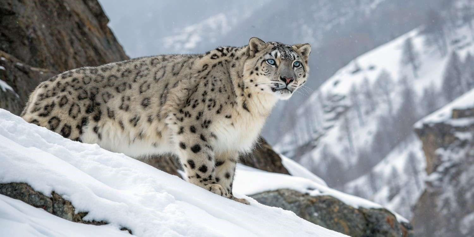 Snow leopards are different from all other felids because they can thrive in places that humans have trouble breathing. They roam frozen cliffs, concealed canyons and sometimes even mountain tops above 5,000 m, where temperatures drop below -40°C, very cold. Their pale grey coats with dark rosettes are perfect for cover in the snow and cliffs of their range. Their powerful legs allow them to leap distances approaching 50 feet, nearly that of an active bus. Their size of paws act like natural snowshoes, allowing them to walk without a sound on powdery surfaces. Their thick long tail allows for balance on sketchy slopes, and even as a comfortable warm blanket when the temps get extremely cold. This high-altitude warrior is millions of years of evolution and perfectly adapted for a life so few humans can imagine.